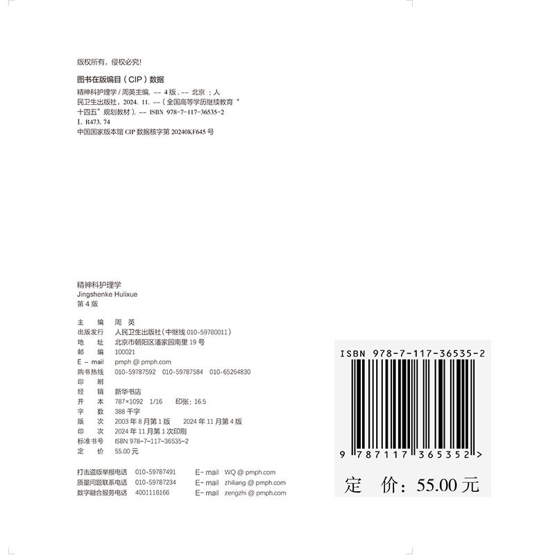 赠网络增值服务 精神科护理学 第4版 成教专升本大专高职高专教材护理学专业 平装 周英 人民卫生出版社 9787117365352