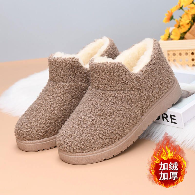 冬季加绒新款女棉鞋软底舒适毛毛鞋休闲时尚雪地靴加厚保暖妈妈鞋