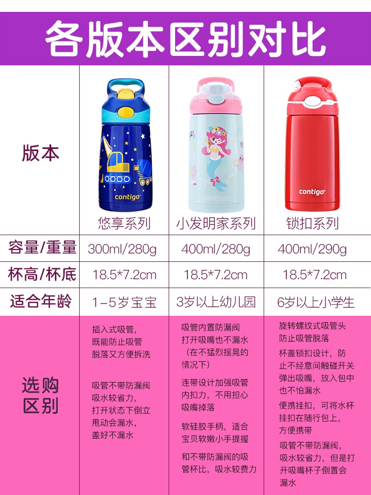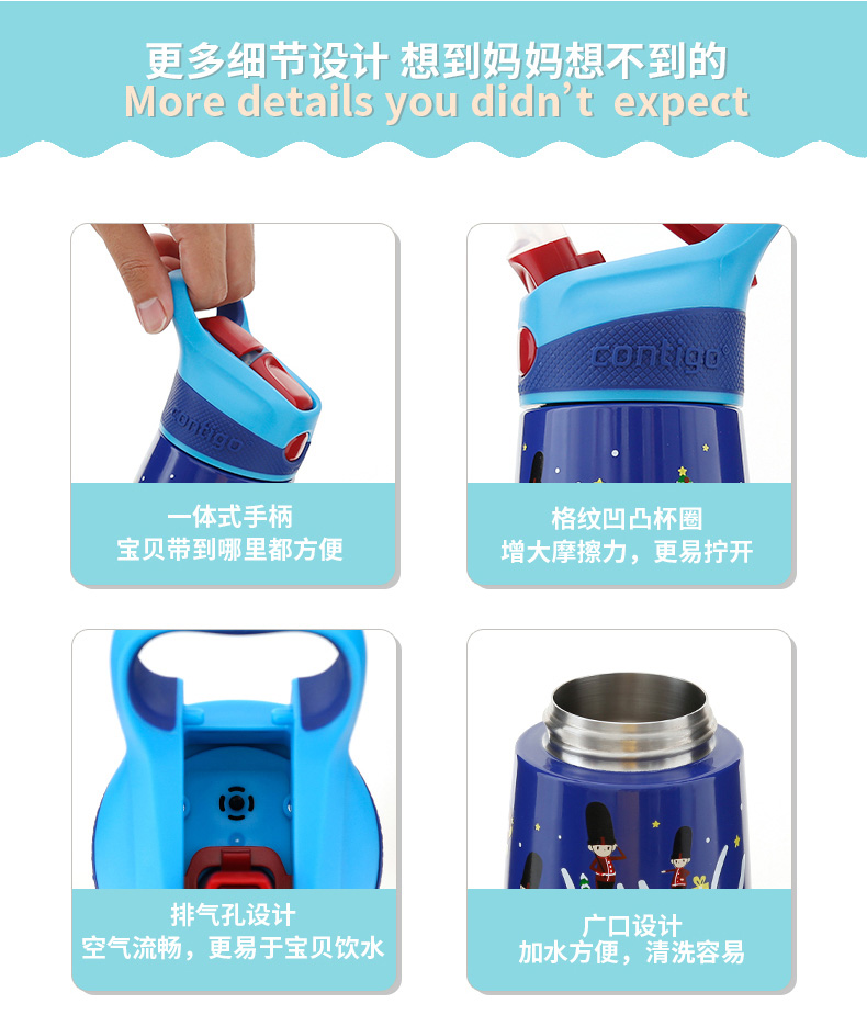 contigo康迪克儿童保温杯300ml宝宝便携不锈钢户外硅胶鸭嘴吸管杯