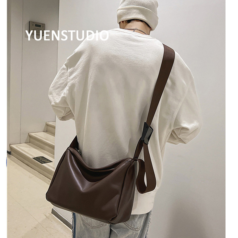 YUEN韩国ins软皮高级感复古单肩斜跨男女包包大容量枕头中性挎包