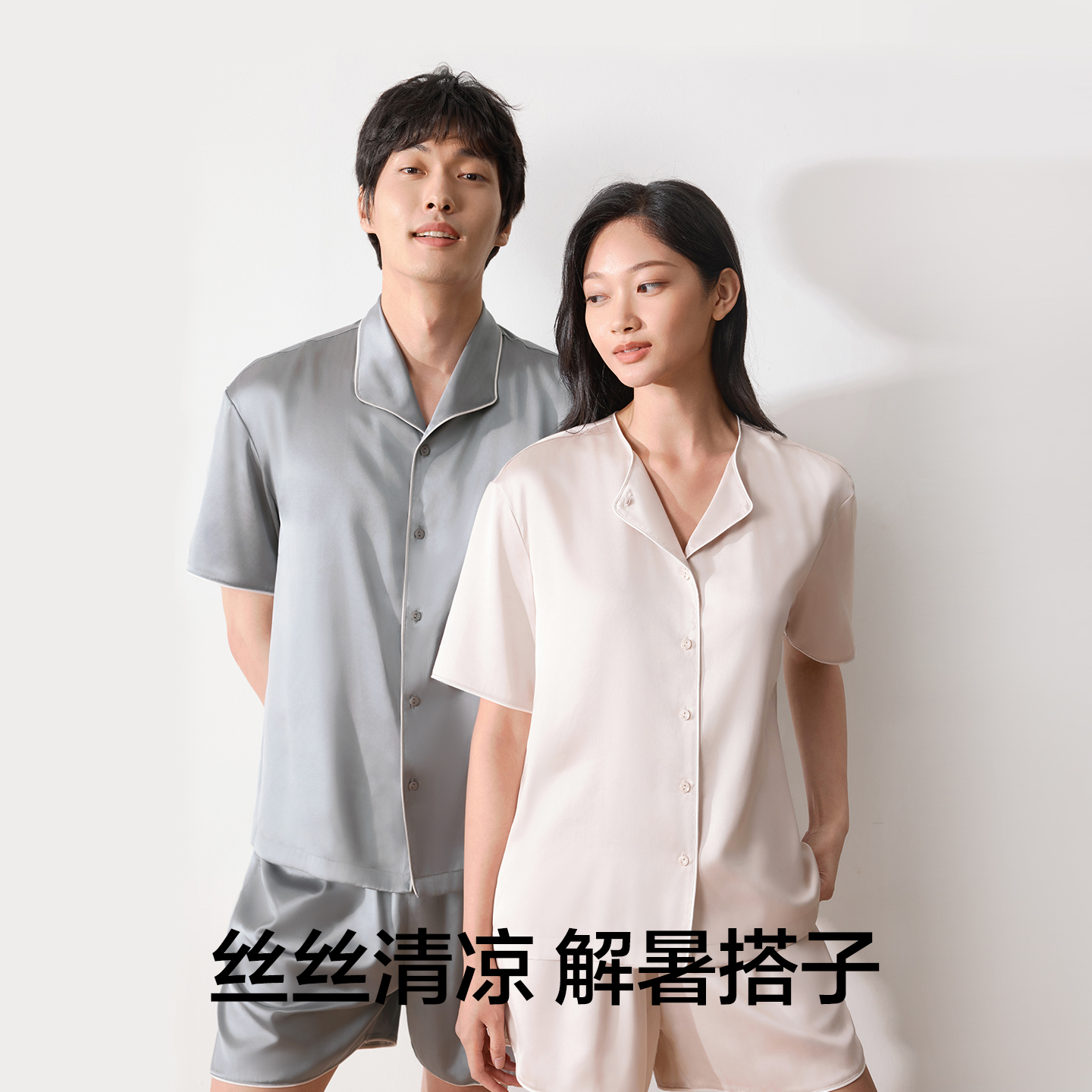 有棵树情侣睡衣冰丝缎面凉感睡衣男款2025夏家居服套装睡衣女