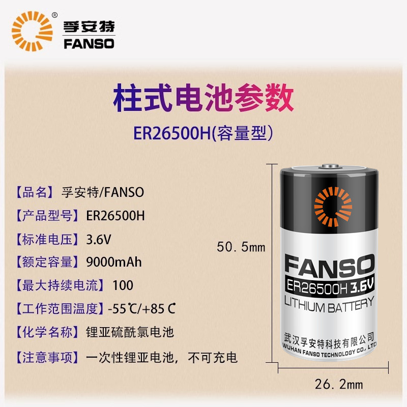 孚安特ER26500H智能水表3.6V锂电池物联网RAM流量计表燃气表电池