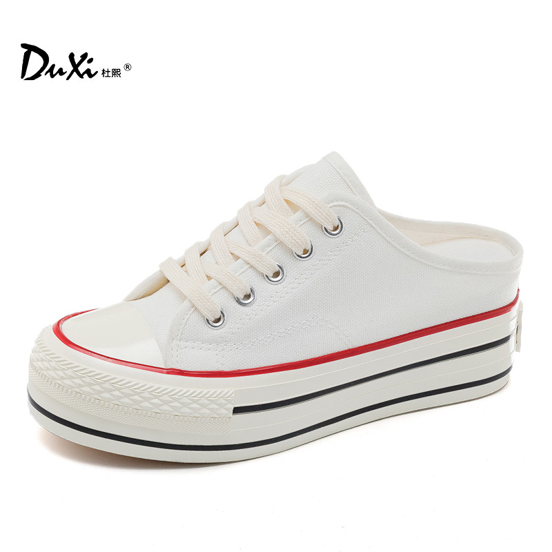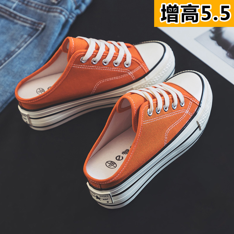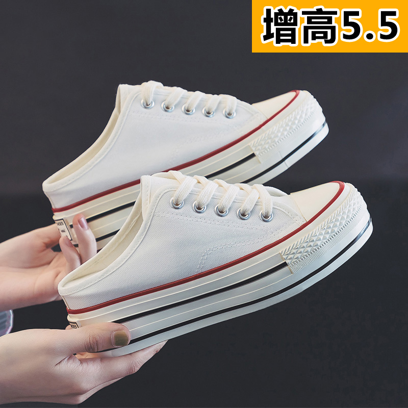 半拖帆布鞋女2025春夏季纯色内增高小白鞋学生无后跟一脚蹬布鞋子
