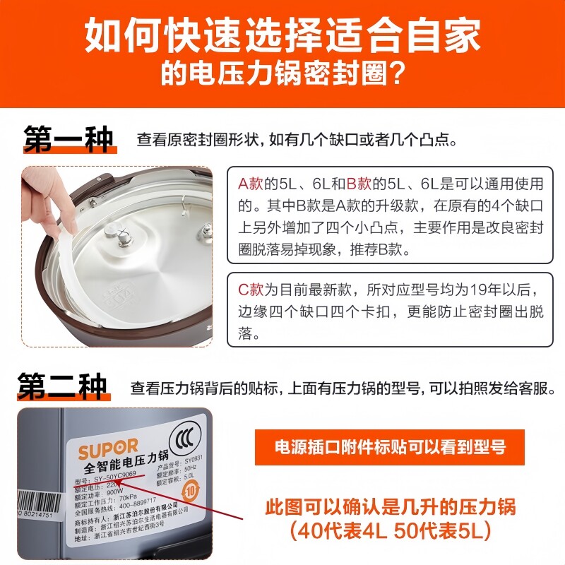 适用苏泊尔电压力锅密封圈配件4L5L6L升电高压锅皮圈橡胶圈硅胶圈