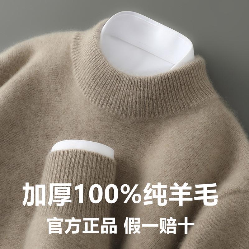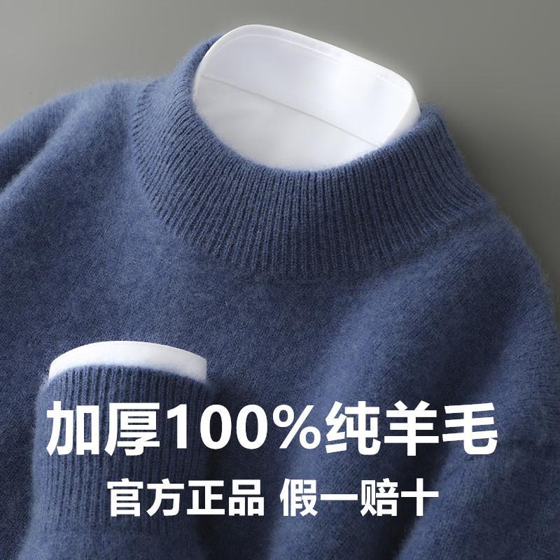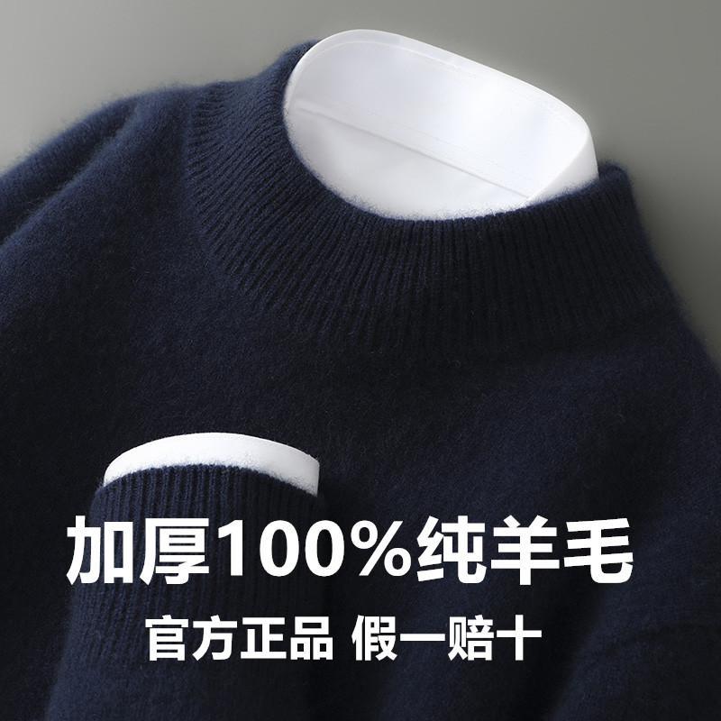 双股加厚100%纯羊毛衫男秋冬季半高领软糯宽松套头针织打底衫毛衣