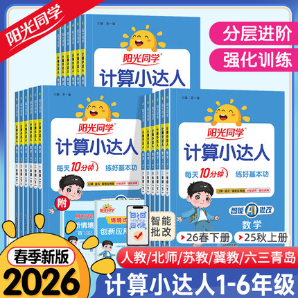2026春秋新版阳光同学计算小达人一二三四五六年级下册上册数学人教版北师大苏教版默写小达人小学生数学思维专项训练同步练习册