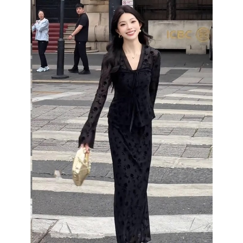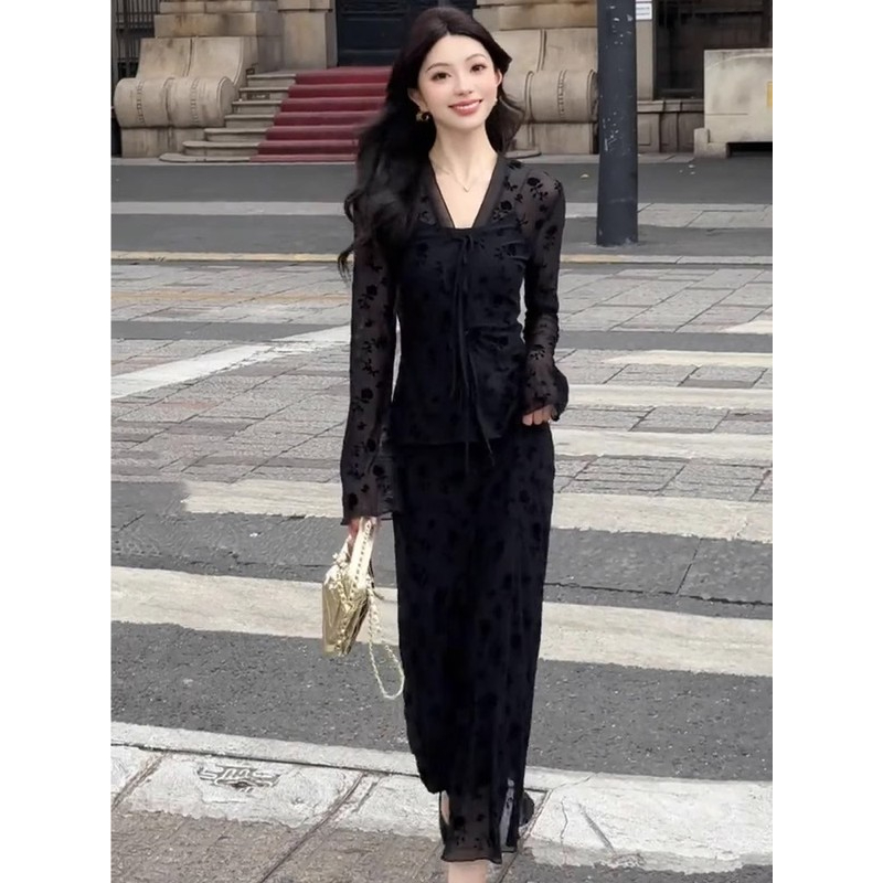 2025夏季新款性感优雅时尚套装蕾丝v领搭配小衫裙子三件套显瘦女