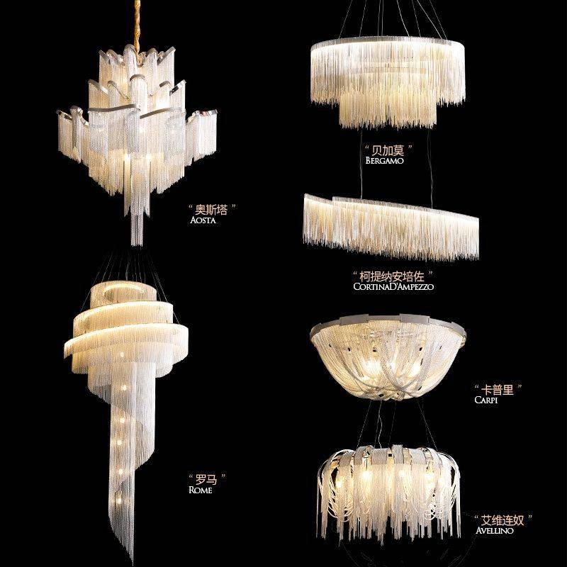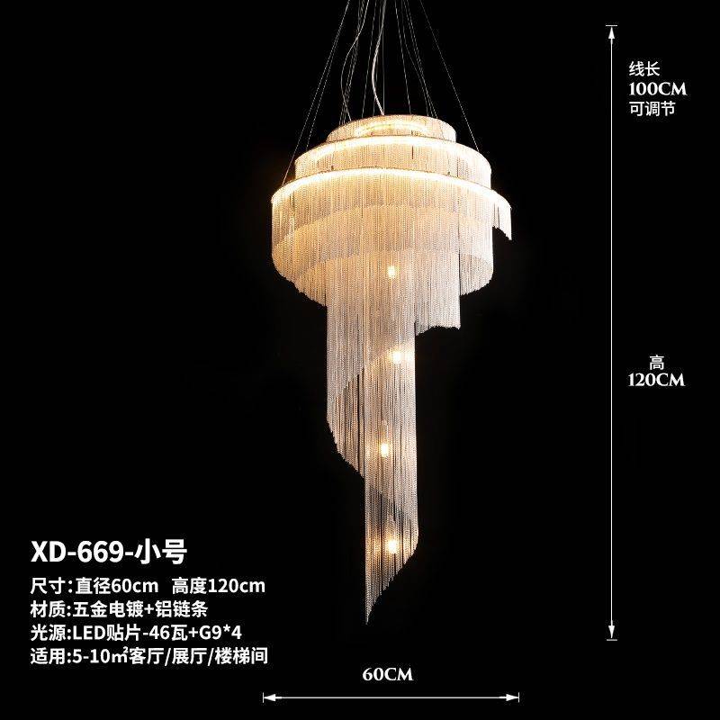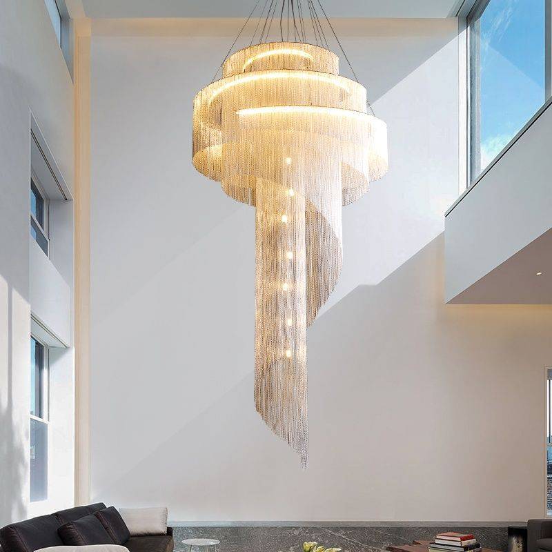 后现代轻奢复式楼大吊灯挑空客厅现代流苏别墅旋转楼梯长吊灯