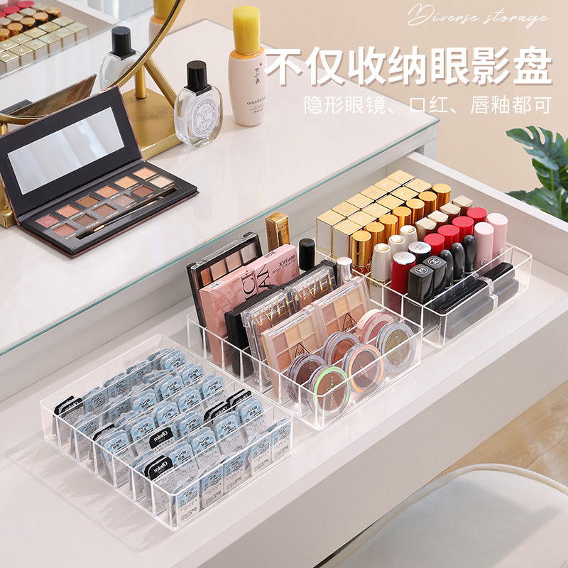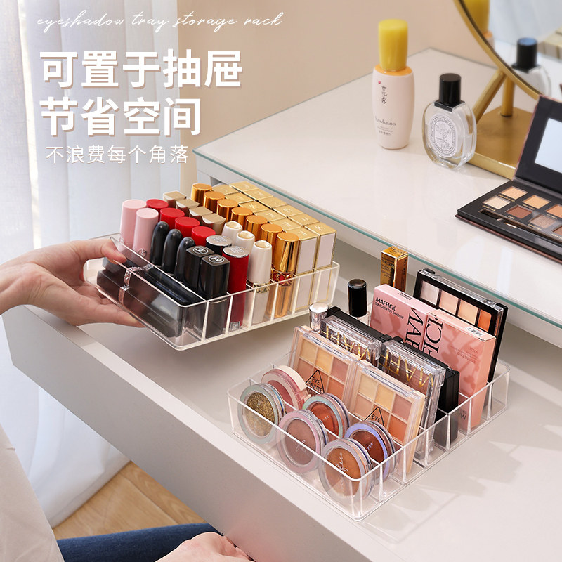 眼影收纳盒透明亚克力化妆品桌面梳妆台分格盒唇釉口红置物架子