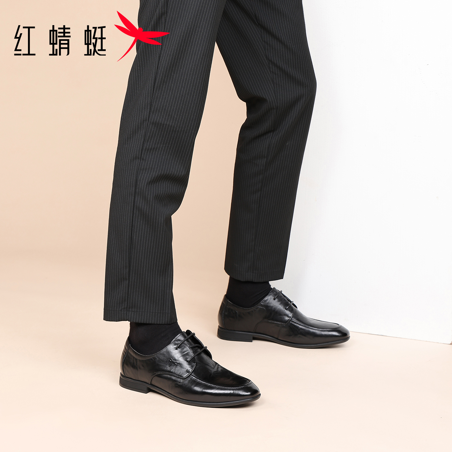 红蜻蜓品牌黑色男士皮鞋