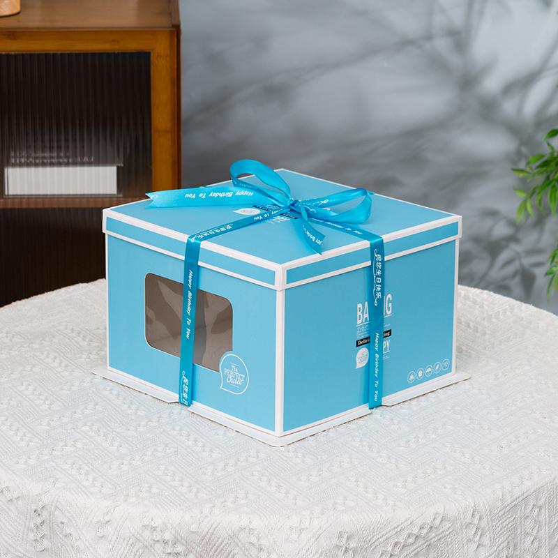 新款生日蛋糕盒子六6八8十10 12 14寸16双层烘焙包装盒高级感开窗