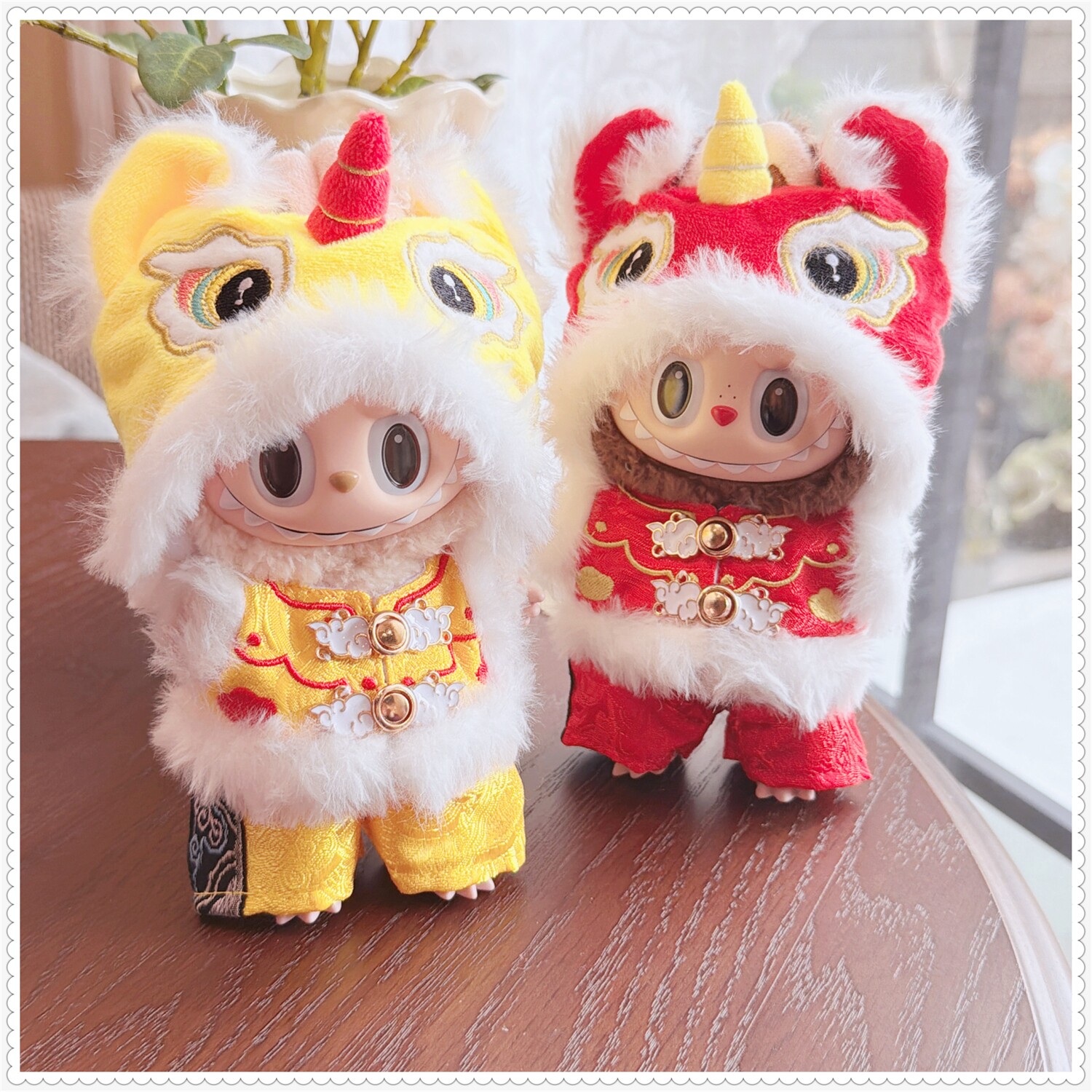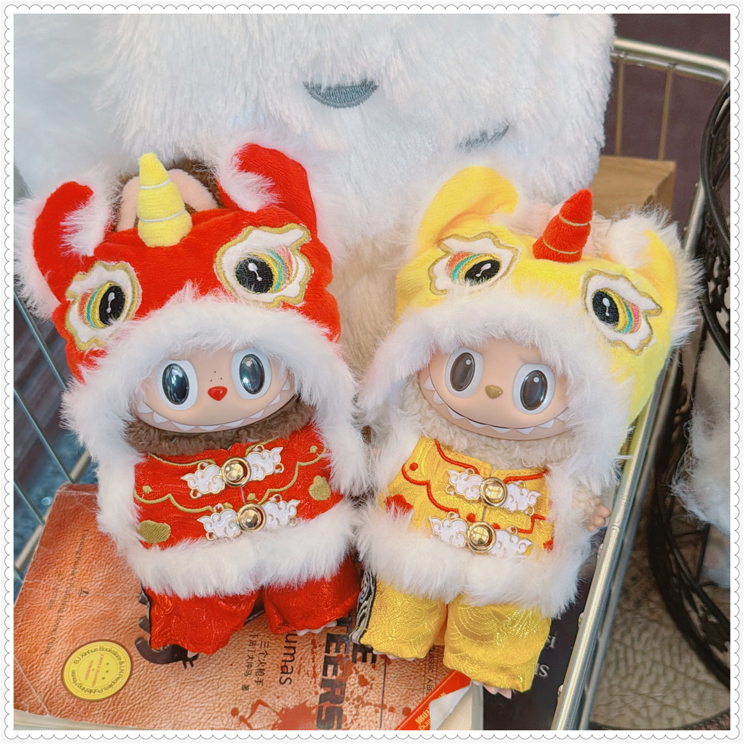 一二三代labubu娃衣17cm拉布布坐坐新年瑞狮呈祥毛绒挂件着替换装