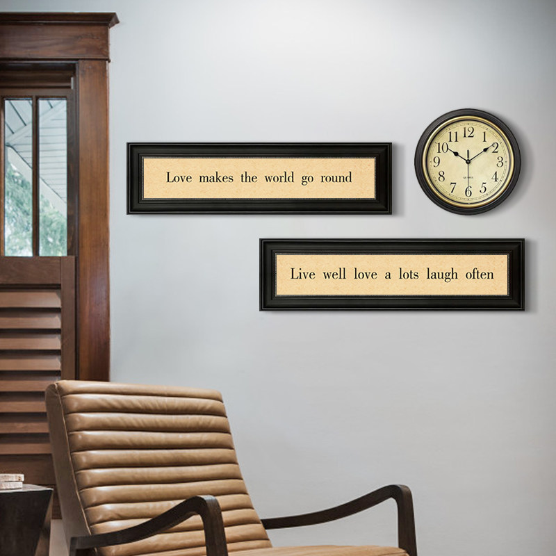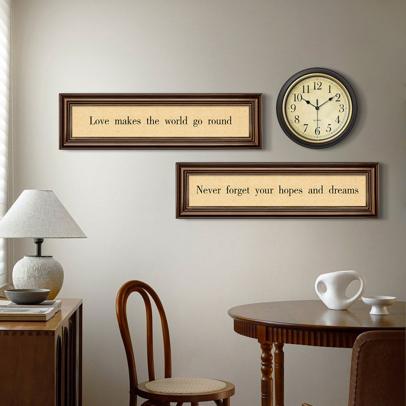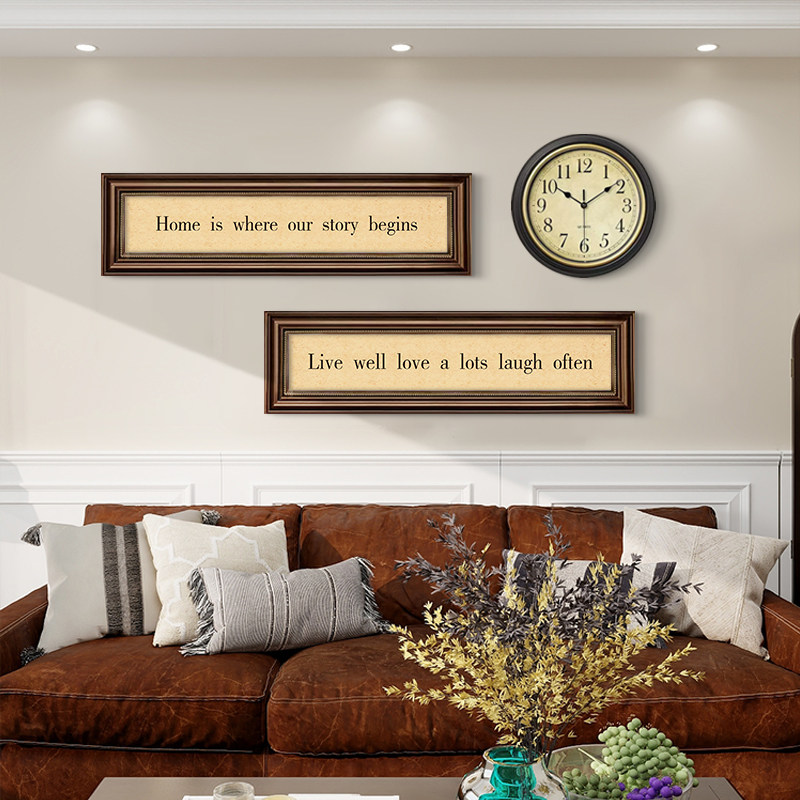 美式英文字牌背景墙装饰画餐厅壁画玄关复古挂画免打孔欧式钟表