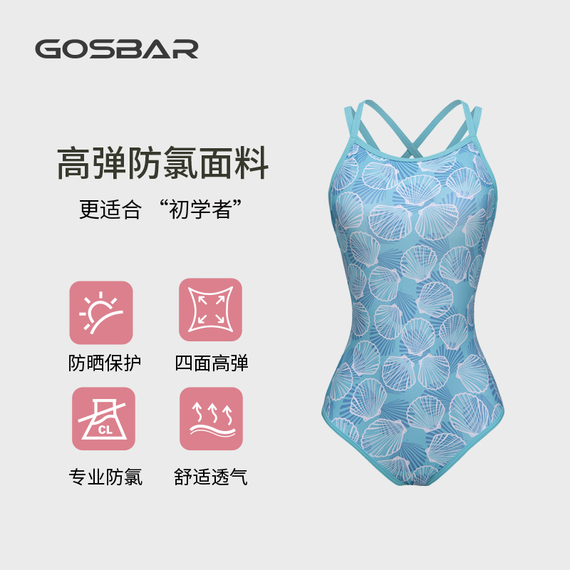 Gosbar泳衣竞速女2025新款专业连体三角竞速训练游泳馆中叉贝壳
