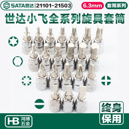 世达旋具套筒内六角十字一字梅花套筒头1/4小飞快速扳手6.3mm批头