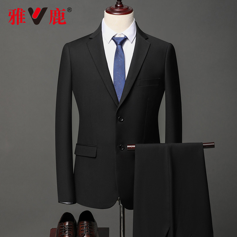 雅鹿职业西服套装男士2025春秋季薄款高级感商务正装结婚面试西装