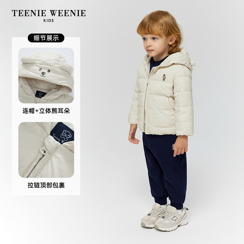【轻量】TeenieWeenie Kids小熊童装25秋冬男女宝熊耳连帽羽绒服