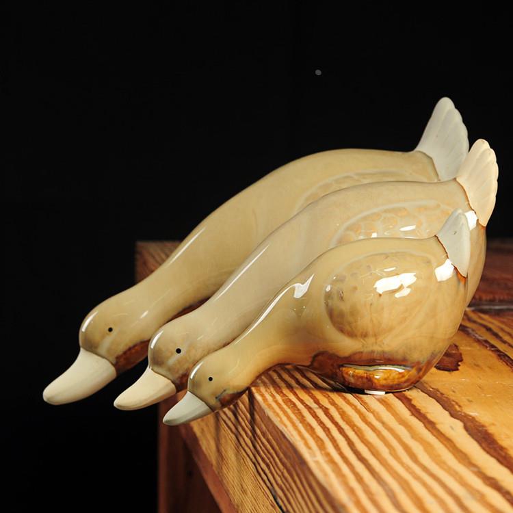 厂家创意陶瓷鸭子工艺品 新中式装饰三件套 家居摆件吸水鸭定制