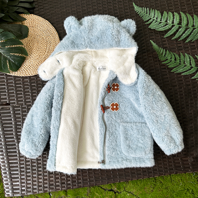 儿童毛毛棉服女童冬季加厚超好看洋气2025新款宝宝装加绒女孩棉袄