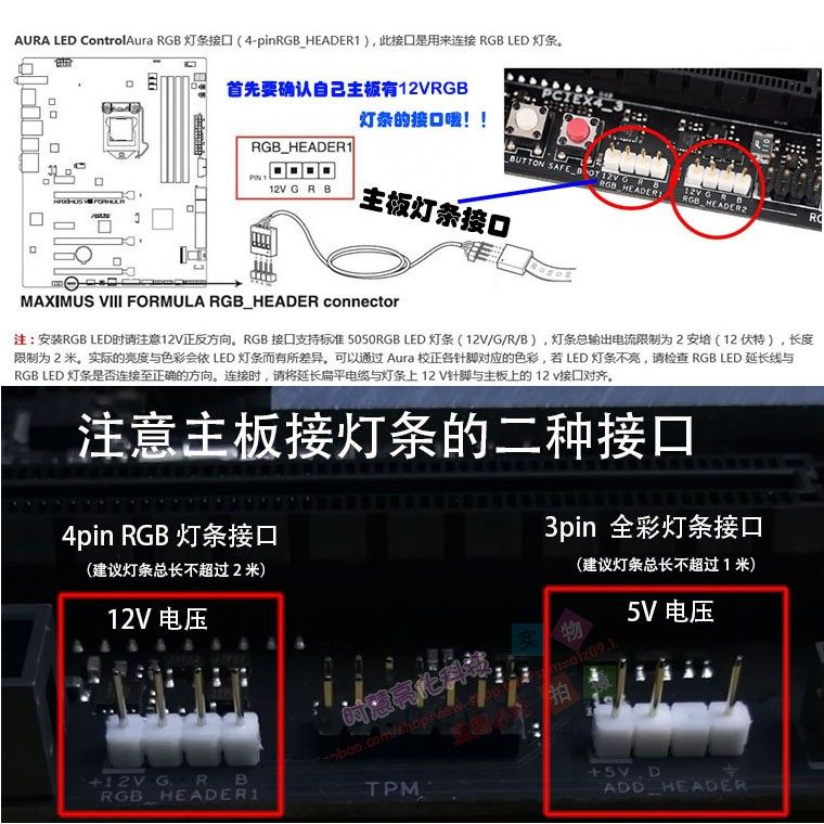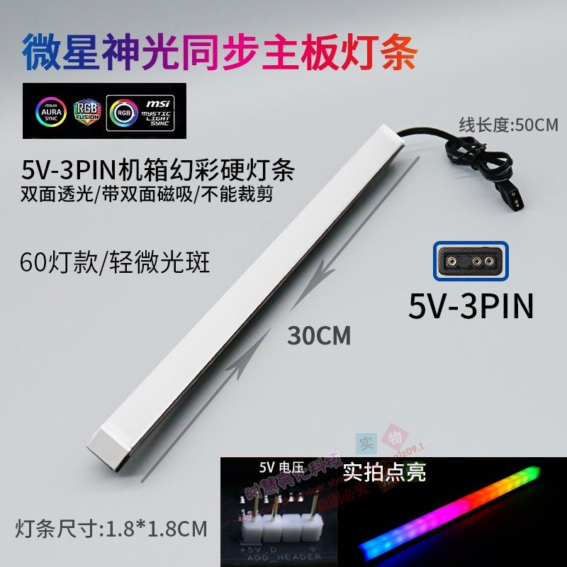 电脑主板12V七彩RGB灯条AURA神光同步5V全彩跑马3pin机箱LED灯带