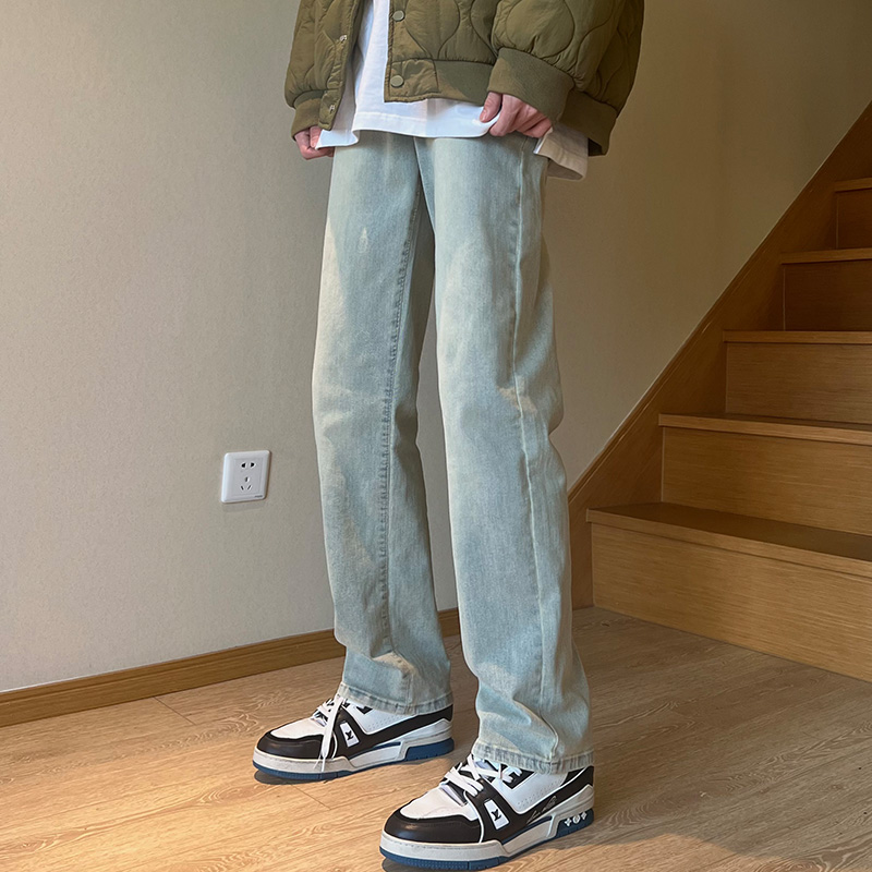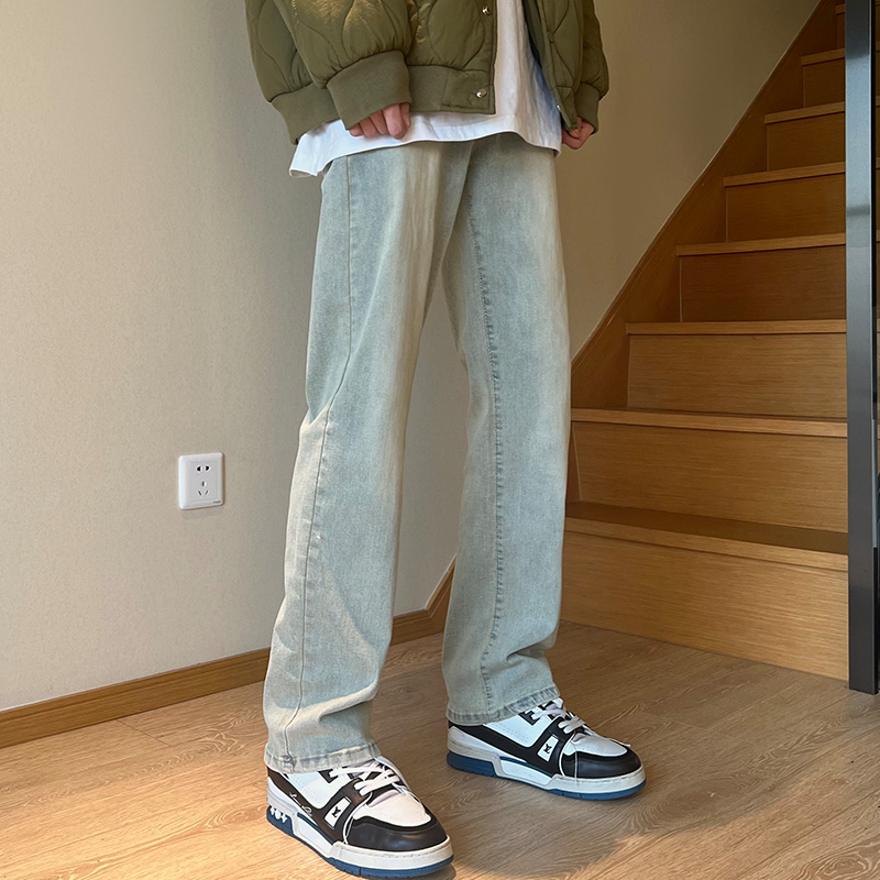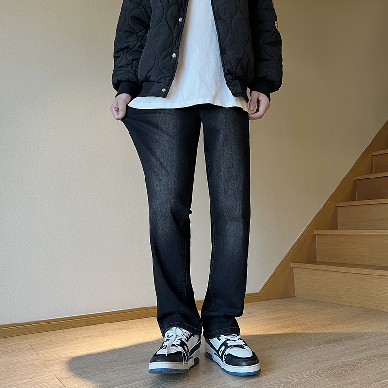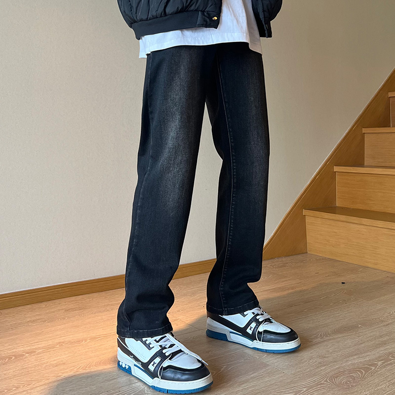 黑色牛仔裤男款秋冬季美式高街潮牌直筒显瘦加绒加厚青少年长裤子