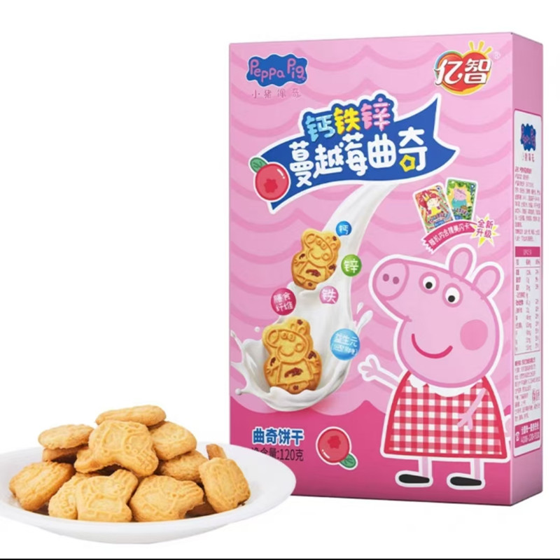 亿智小猪佩奇钙铁锌曲奇饼干120g牛奶蔓越莓蔬菜学生儿童小零食