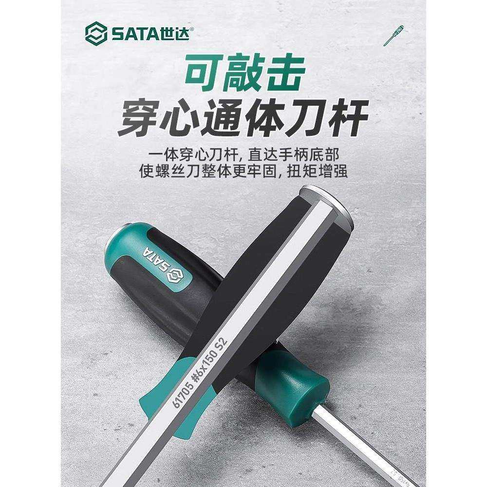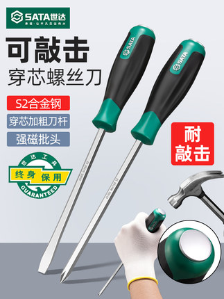 世达十字一字穿心螺丝刀敲击工具平口强磁起子套装大号工业级改锥