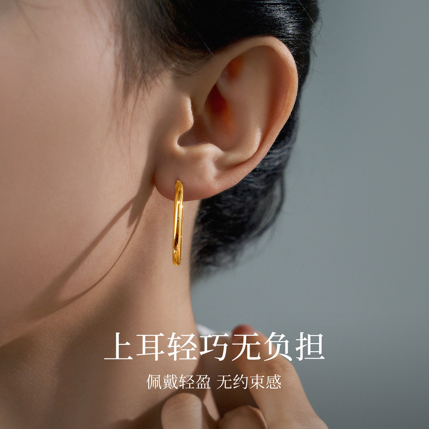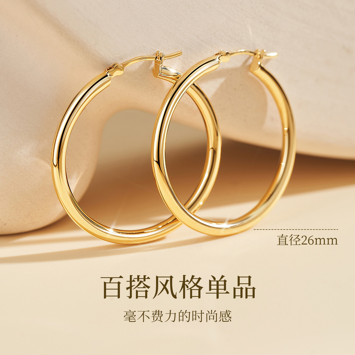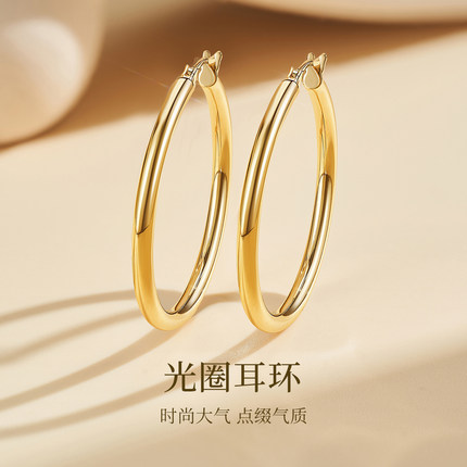 大耳圈 18K金素圈耳环女款亮面耳扣18k金素金简约百搭耳饰耳环