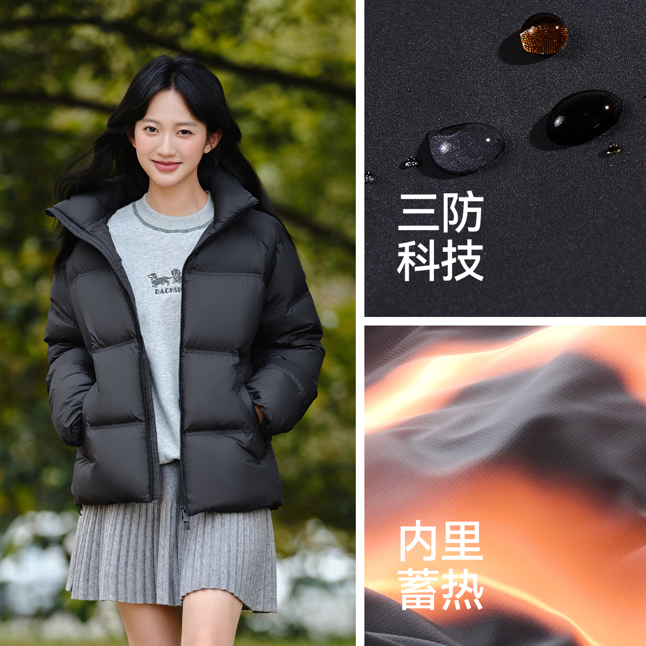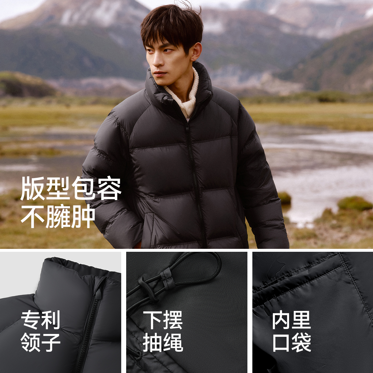 森马羽绒服男2025冬季新款加厚短款外套三防发热面包服黑色羽绒衣