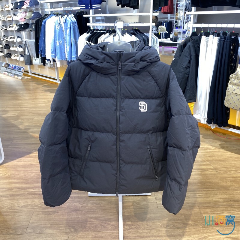 正品MLB简约LOGO百搭保暖男女运动休闲连帽羽绒服外套3ADJB1146