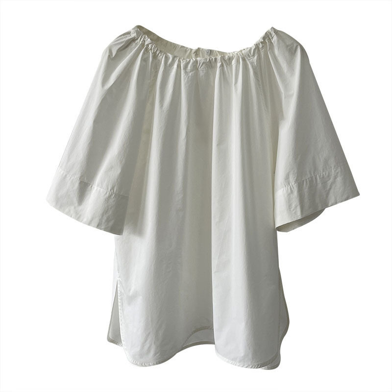 2025春夏新款短袖上衣女韩系纯色宽松小众设计感衬衫2073强明女装