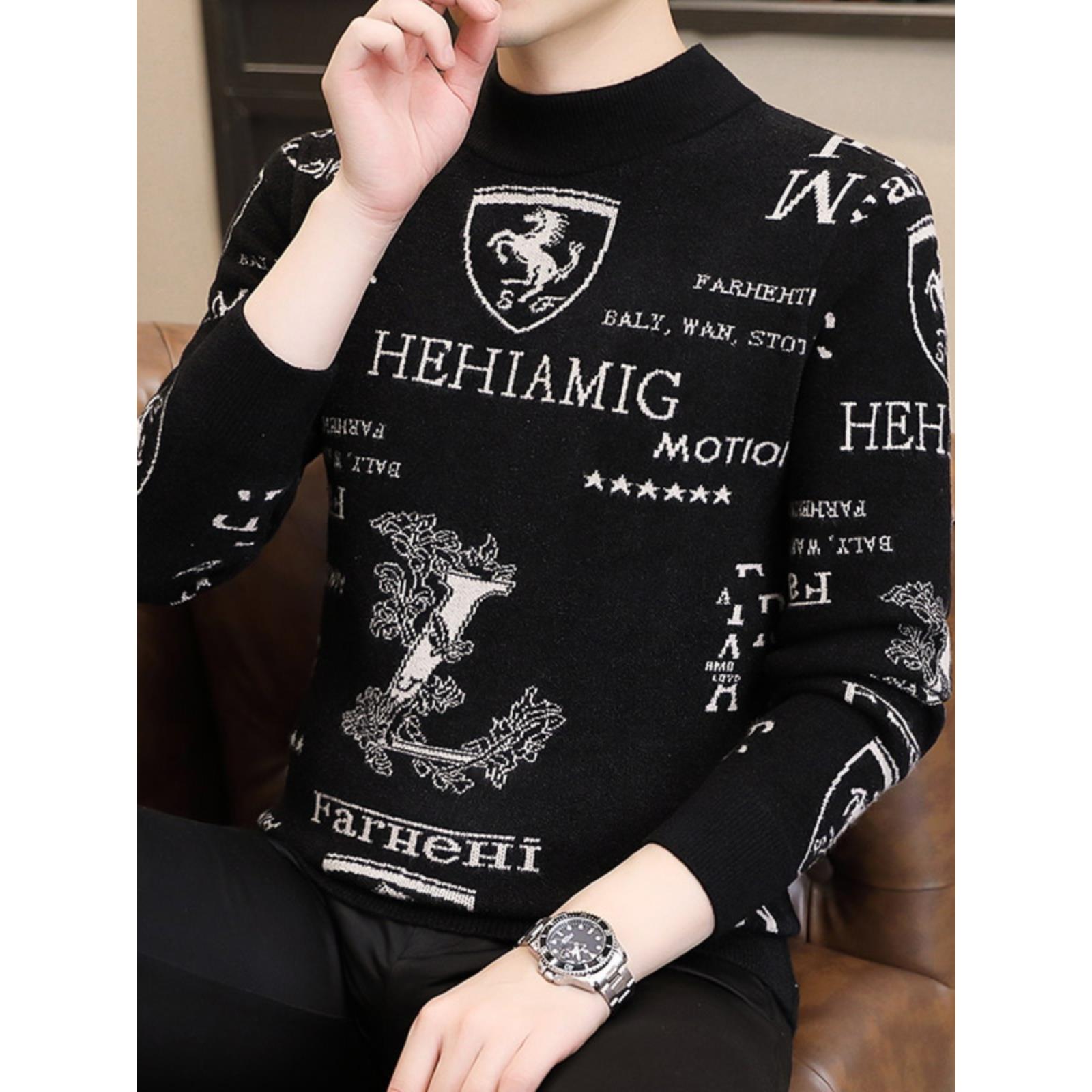 恒源祥2025新款男士半高领秋冬季毛衣羊绒羊毛加厚款针织打底小衫