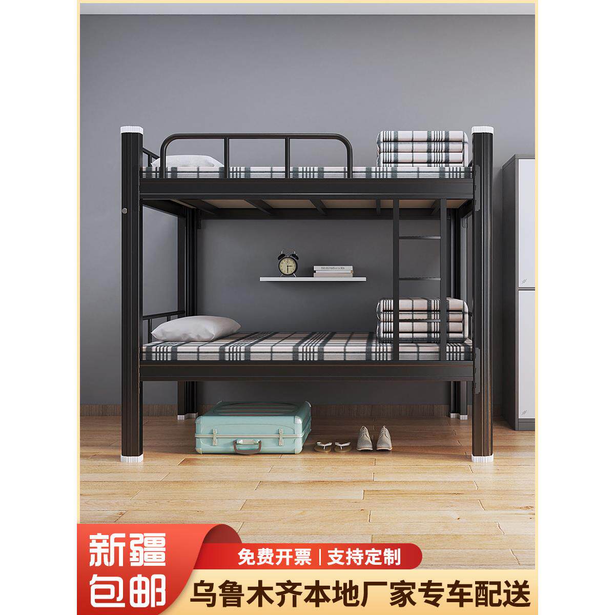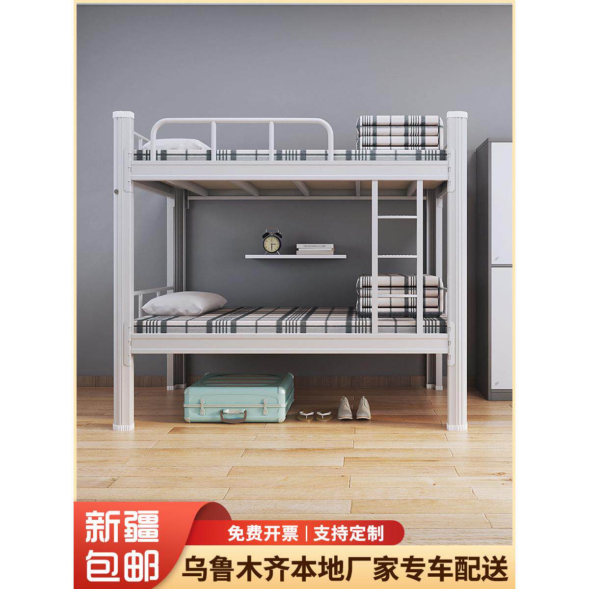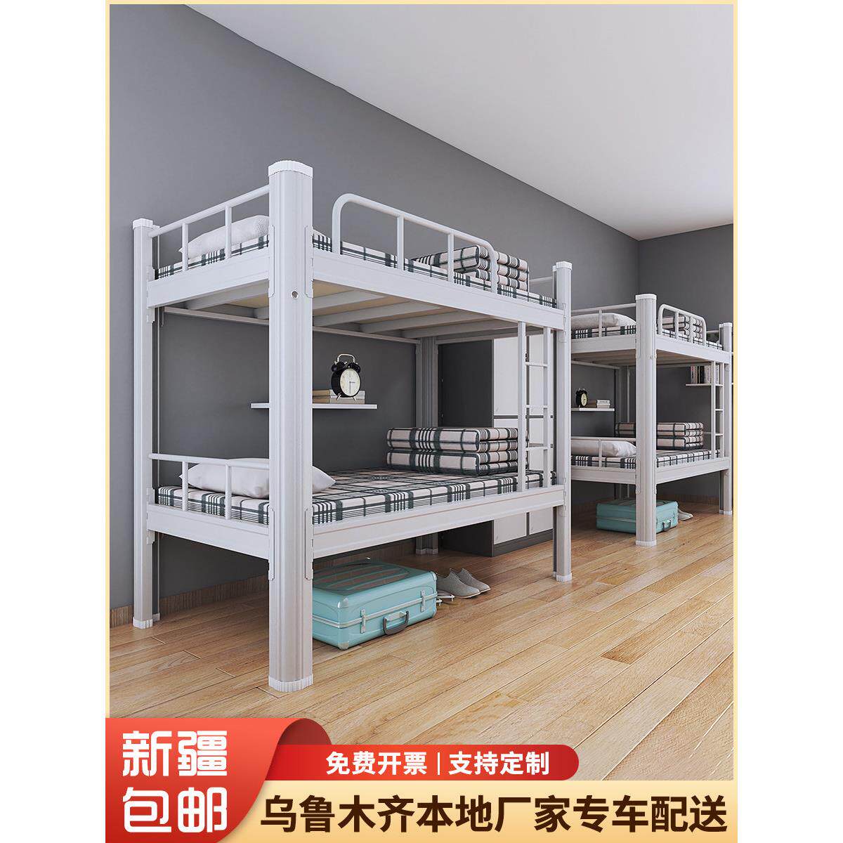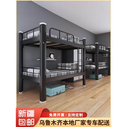 新疆包邮双层铁架床员工宿舍床学生寝室双人钢制床高低床上下铺床