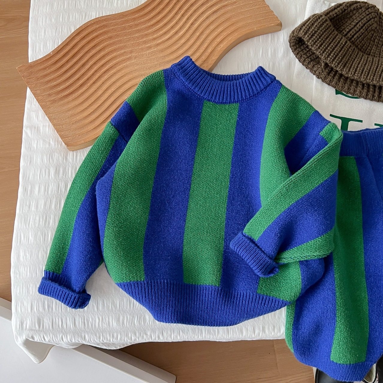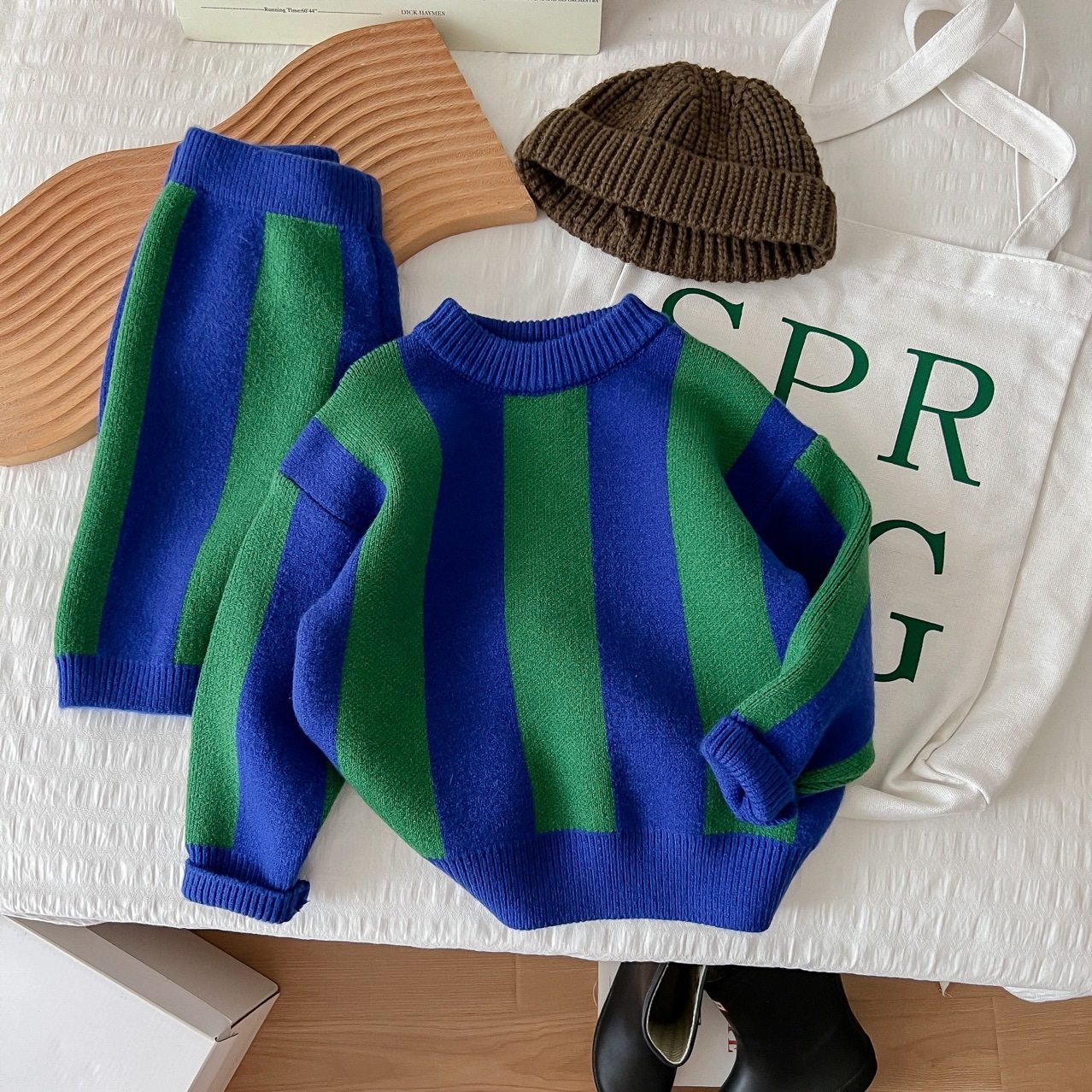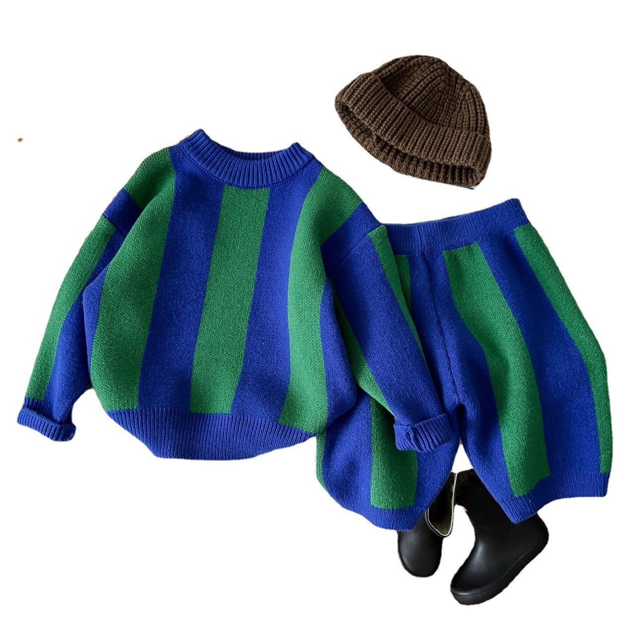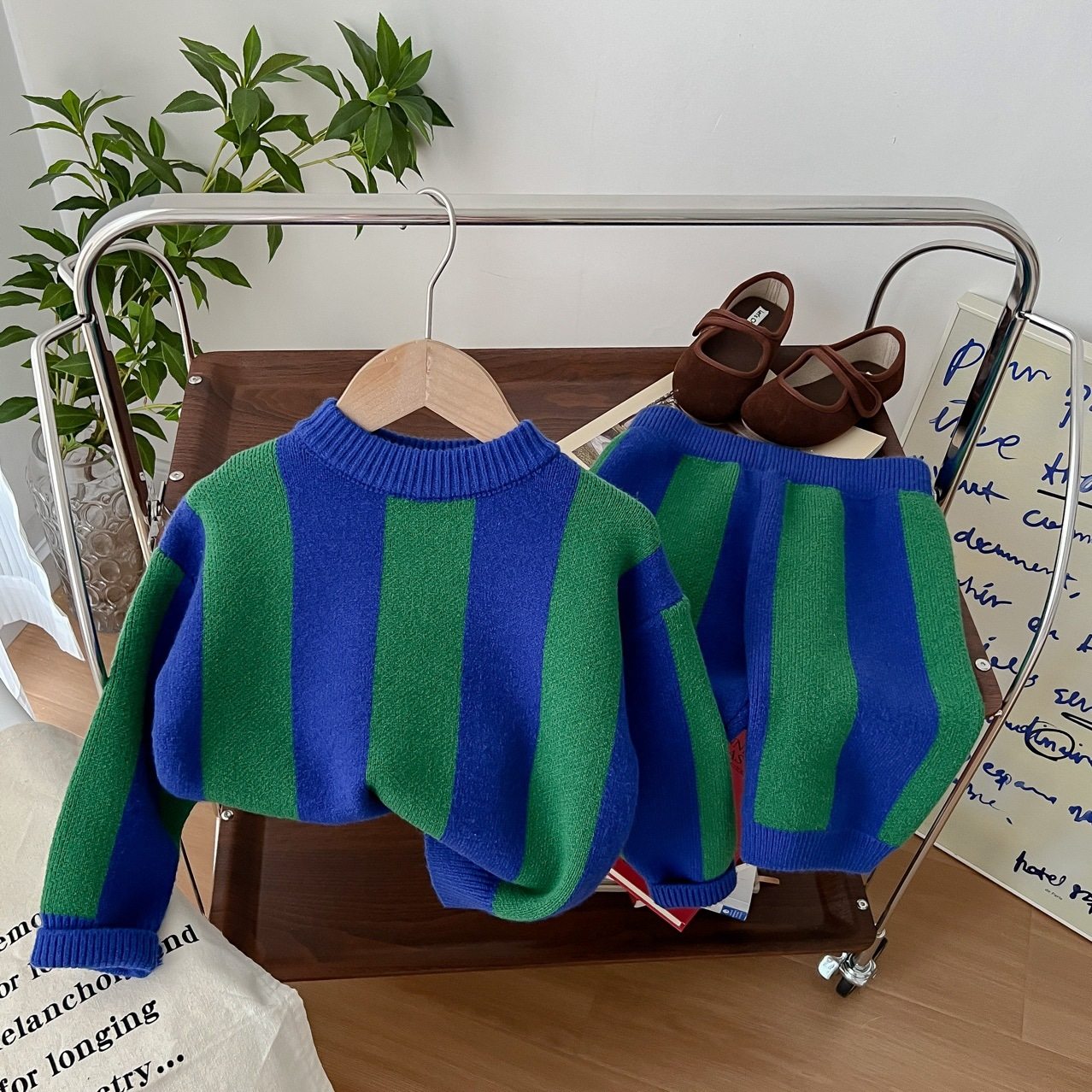 韩国童装2025秋冬新款男女童撞色条纹针织衫儿童毛衣短裤洋气套装