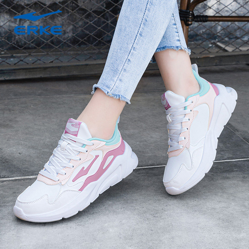 鸿星尔克运动鞋女鞋春季皮面休闲鞋2026新款女士旅游鞋防水跑步鞋