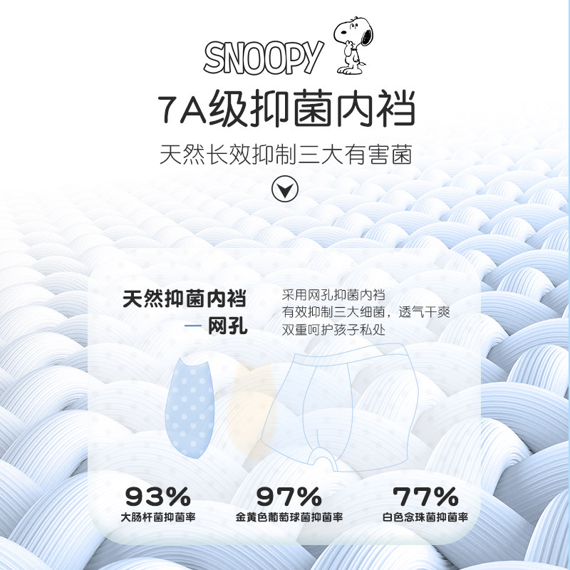 史努比儿童纯棉内裤男童全棉男孩小童中大童莫代尔四角裤抗菌A类
