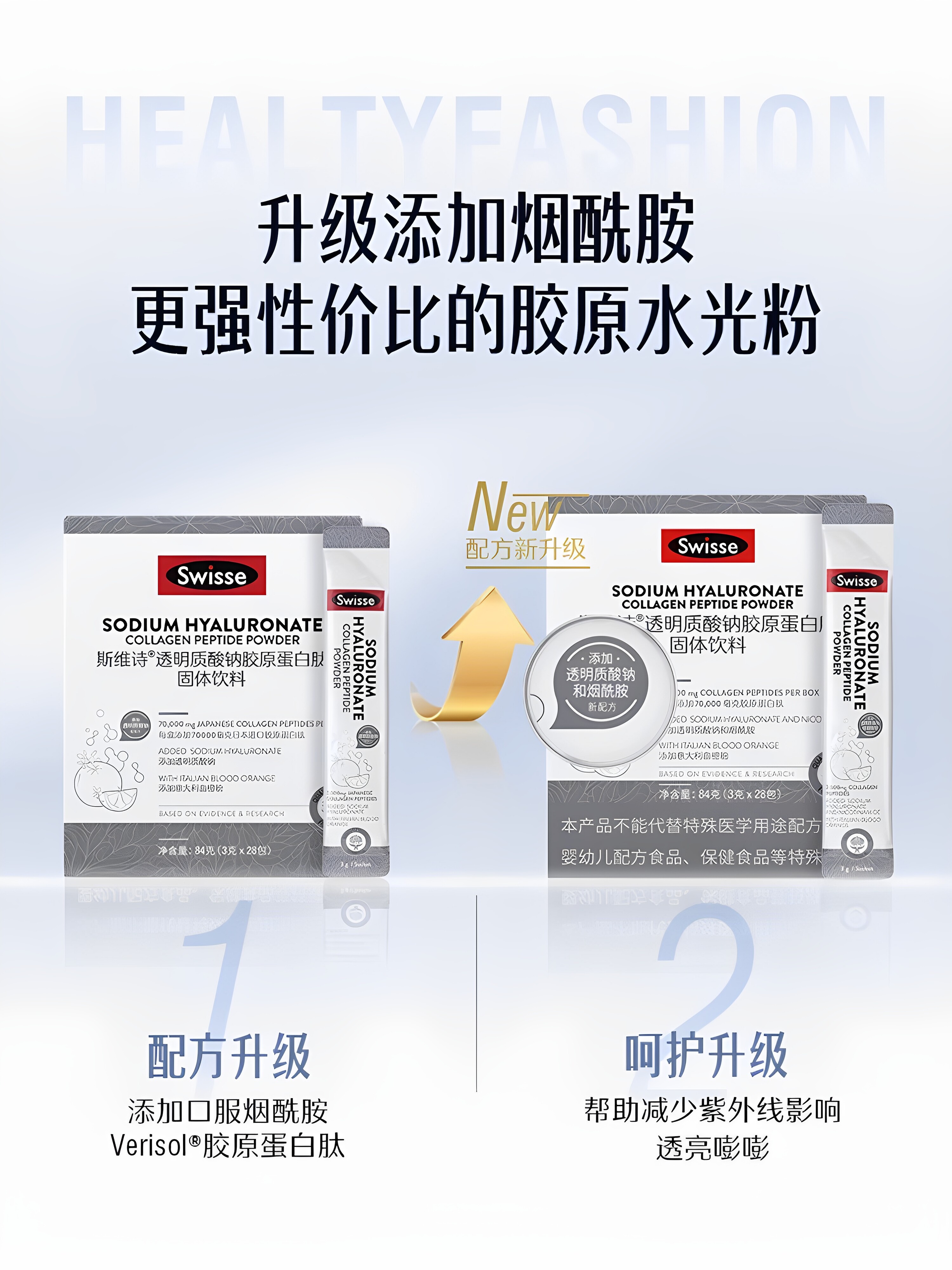 swisse斯维诗胶原蛋白肽水光粉口服玻尿酸透明质酸钠官方旗舰正品