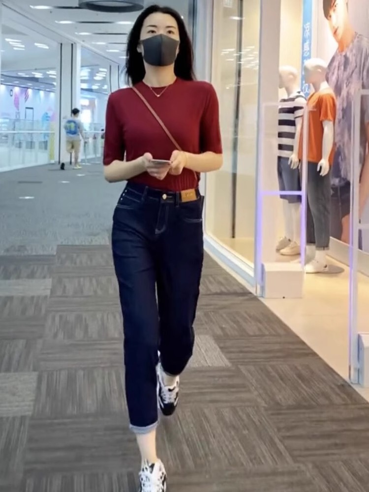 高腰牛仔九分裤哈伦裤女2025春秋新款宽松百搭显瘦休闲裤子老爹裤