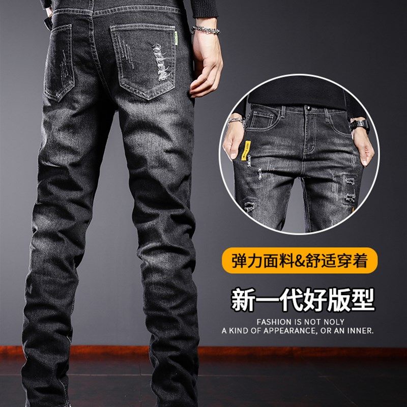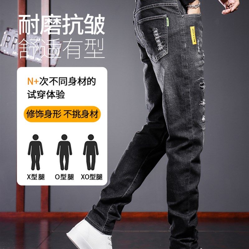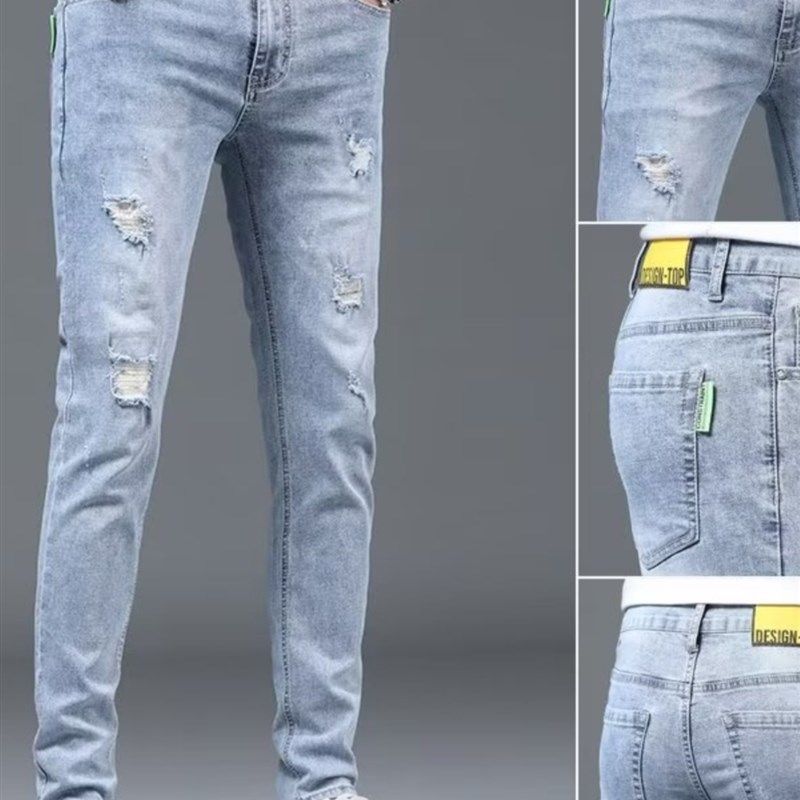 牛仔裤男潮流潮男破洞修身小脚裤男士夏季2024新款弹力休闲长裤子