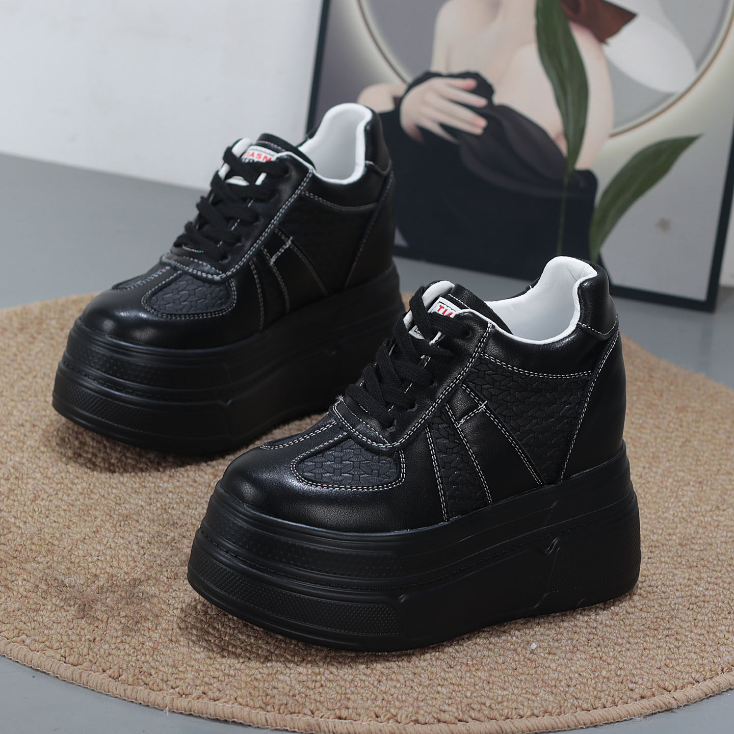 2025秋季超高跟内增高12CM小个子10CM厚底松糕坡跟小白鞋低帮单鞋