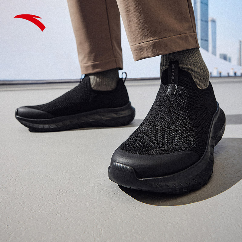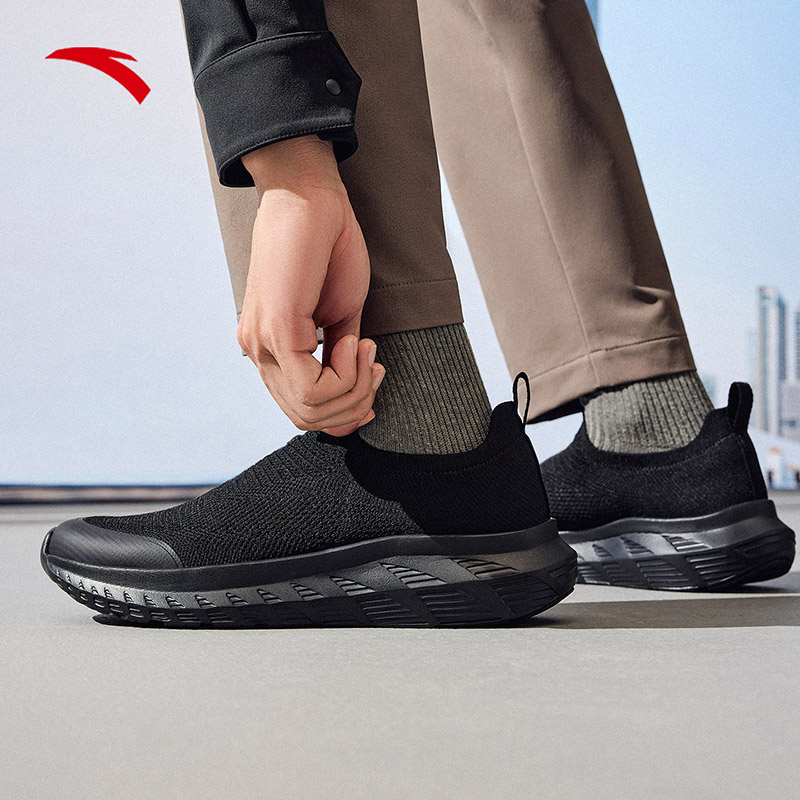 安踏一脚蹬休闲鞋男鞋秋季新款网面透气舒适通勤运动鞋112537703