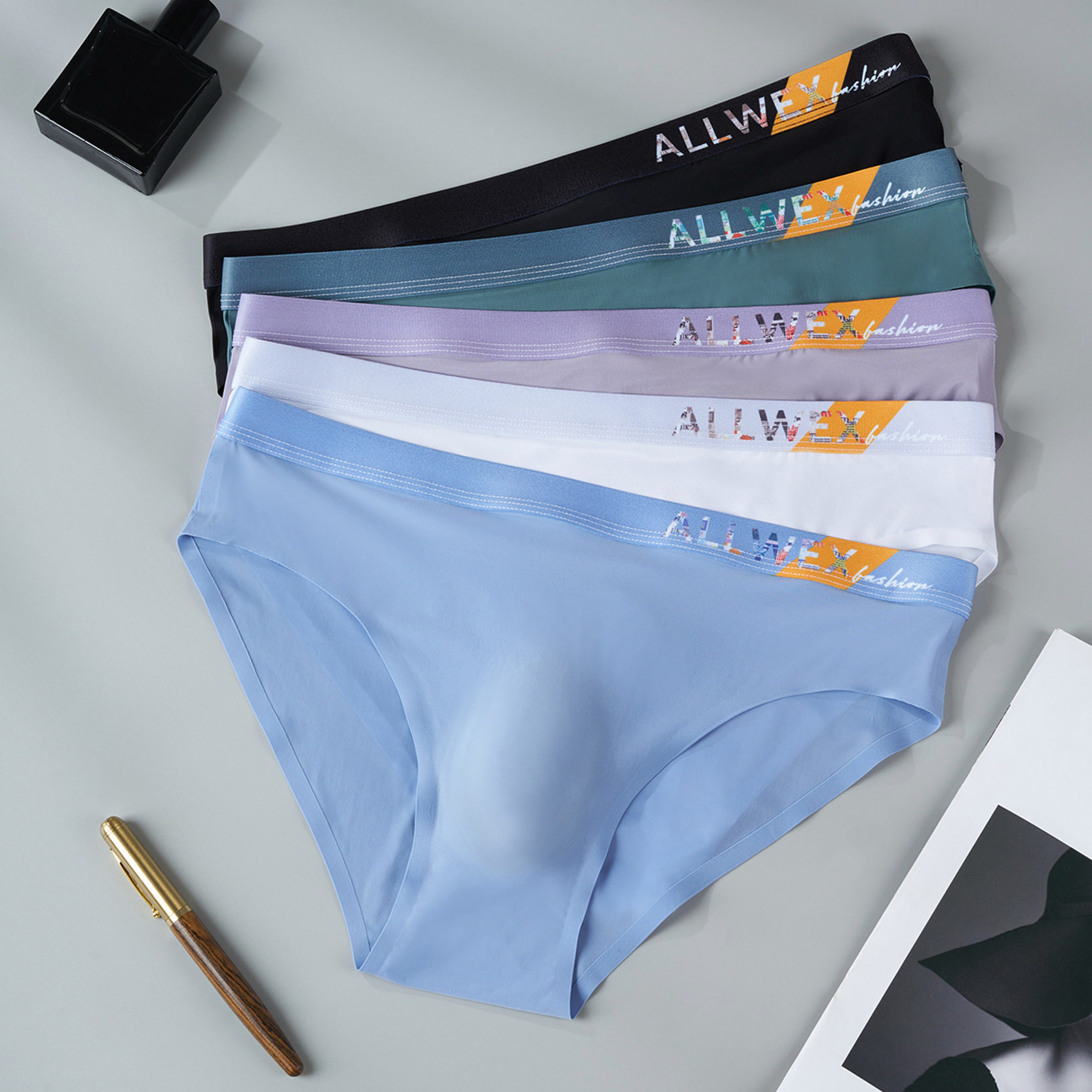 时尚印花腰带男士内裤冰丝轻薄三角裤性感无痕运动健身透气速干夏