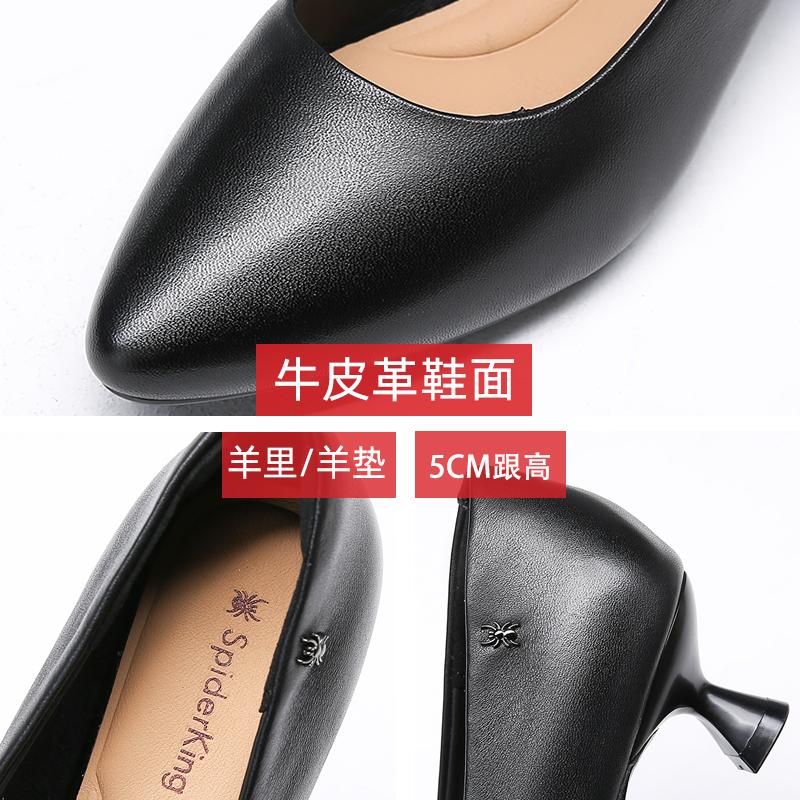 蜘蛛王女鞋2025新款真皮中跟浅口单鞋春秋5厘米细跟不累脚工作鞋