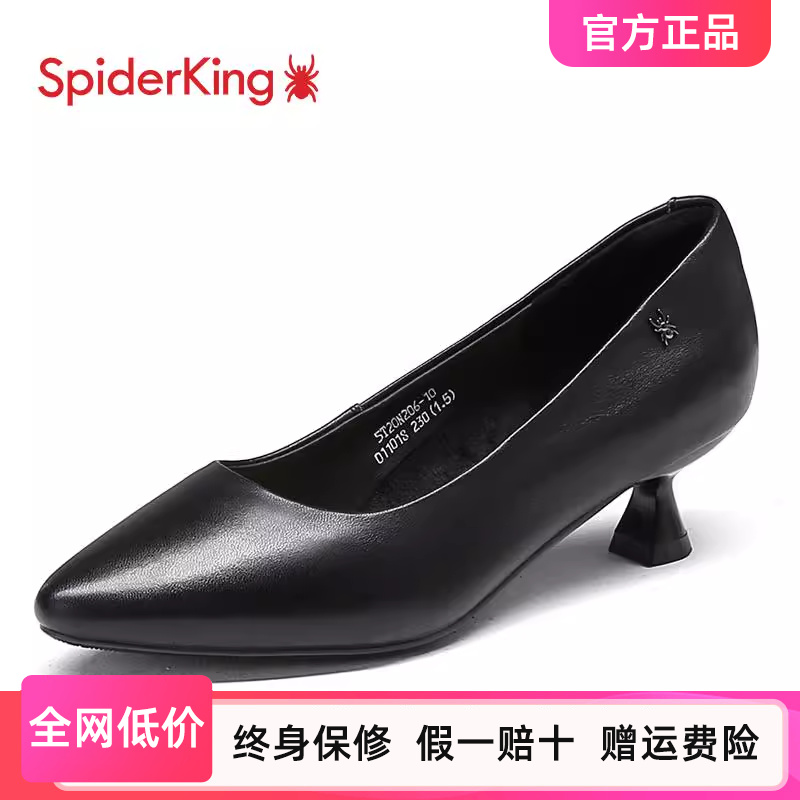 蜘蛛王2025新款真皮中跟工作鞋女