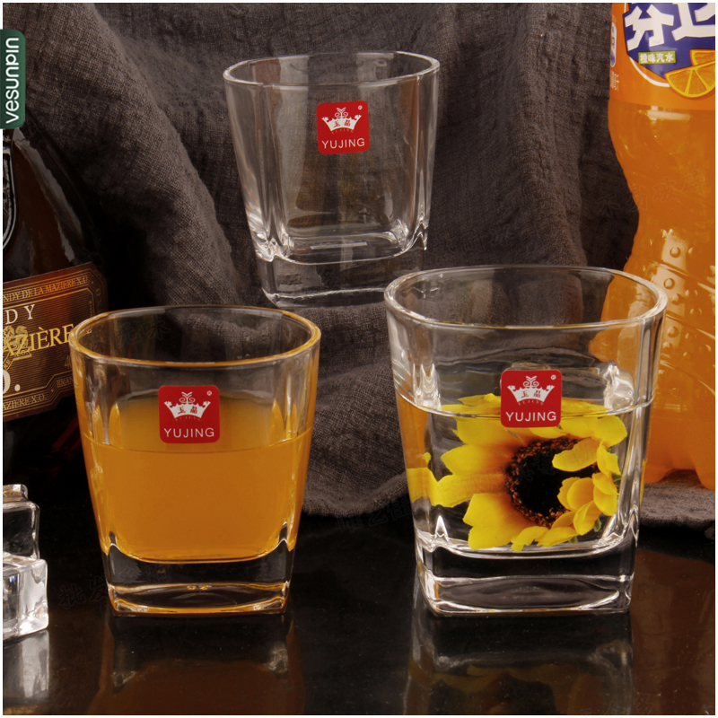 耐热方形玻璃杯家用透明果汁杯洋酒杯餐厅自助茶杯啤酒水杯子4008