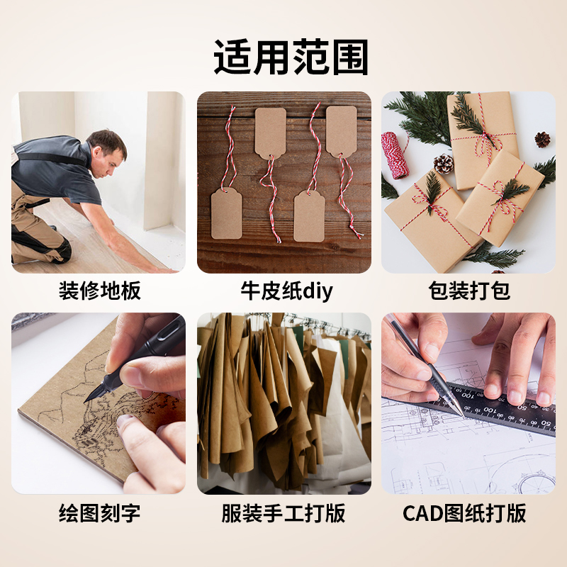 整卷牛皮纸大张包装纸服装打版专用纸大尺寸全开包书纸幼儿园环创手工绘画海报贴墙厚卡纸卷裁缝打样纸封标书