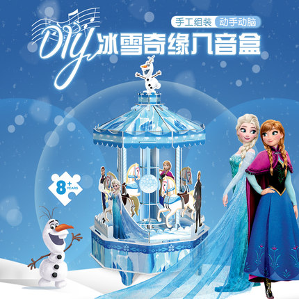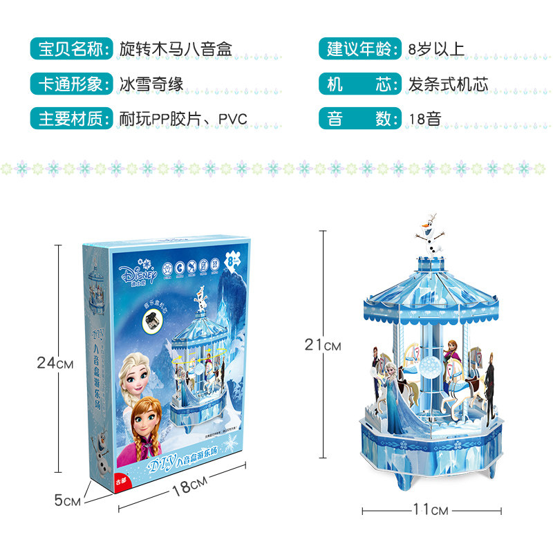 迪士尼3D立体拼图拼装旋转木马八音盒音乐盒手工DIY玩具女孩儿童