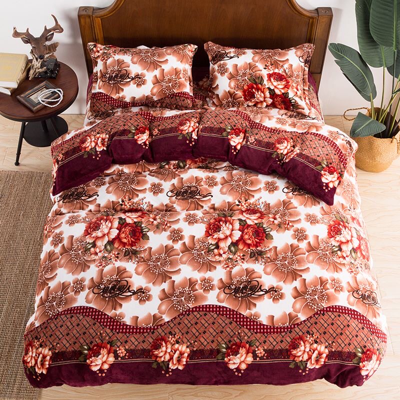 冬季珊瑚绒四件套双面绒加厚保暖牛奶绒法兰绒被套床单床上三件套