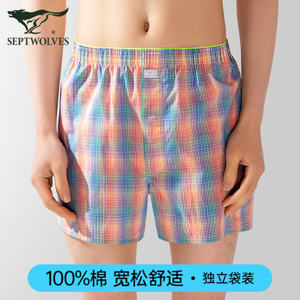 七匹狼男士内裤男生宽松阿罗裤纯棉哈罗裤平角裤衩运动四角短裤头