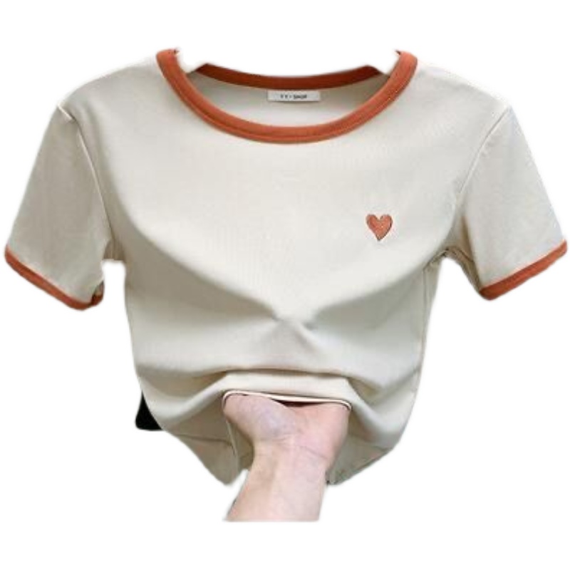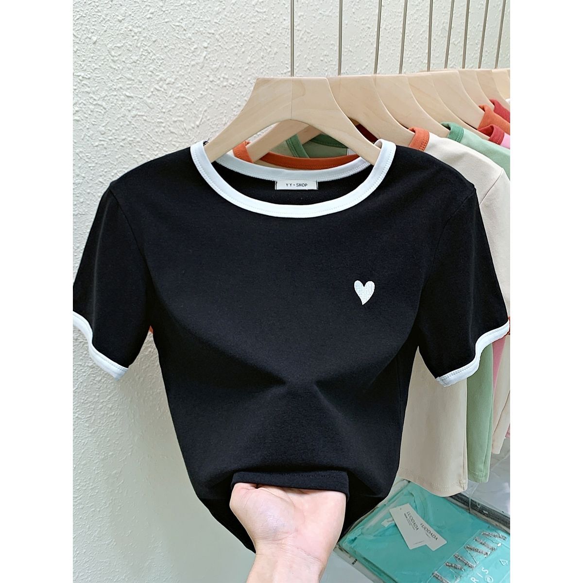 女童刺绣爱心t恤夏季新款儿童短袖T恤薄款中大童短款上衣女孩半袖
